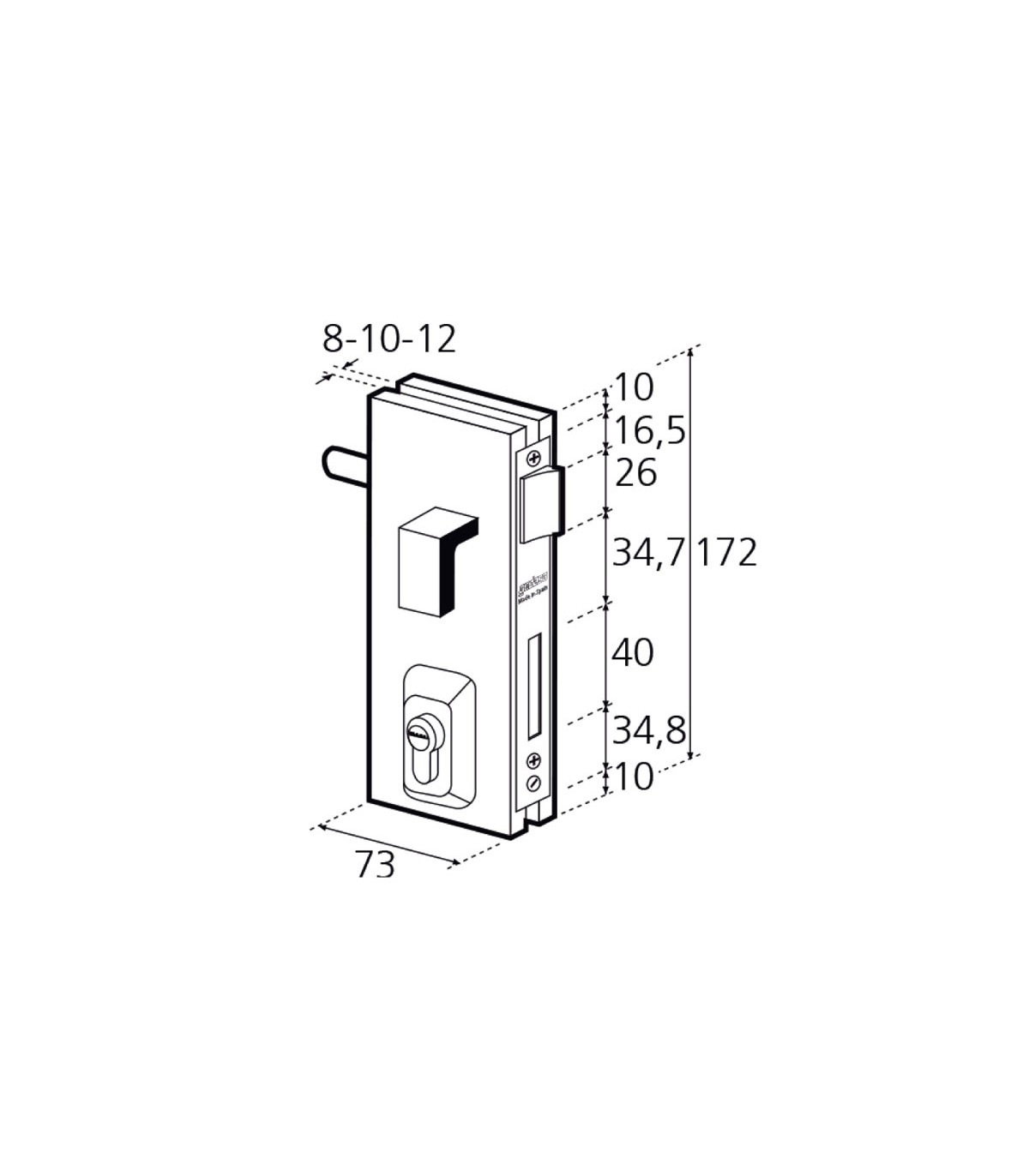 CERRADURA GOLPE/LLAVE CON MANETA INT. Y POMO FIJO EXT.