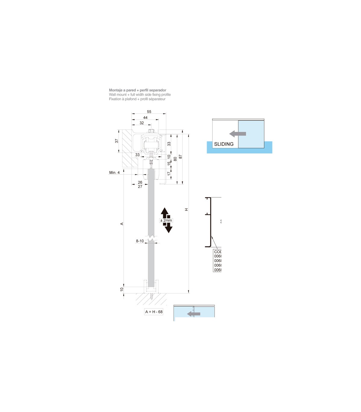 - Montaje a pared + perfil separador