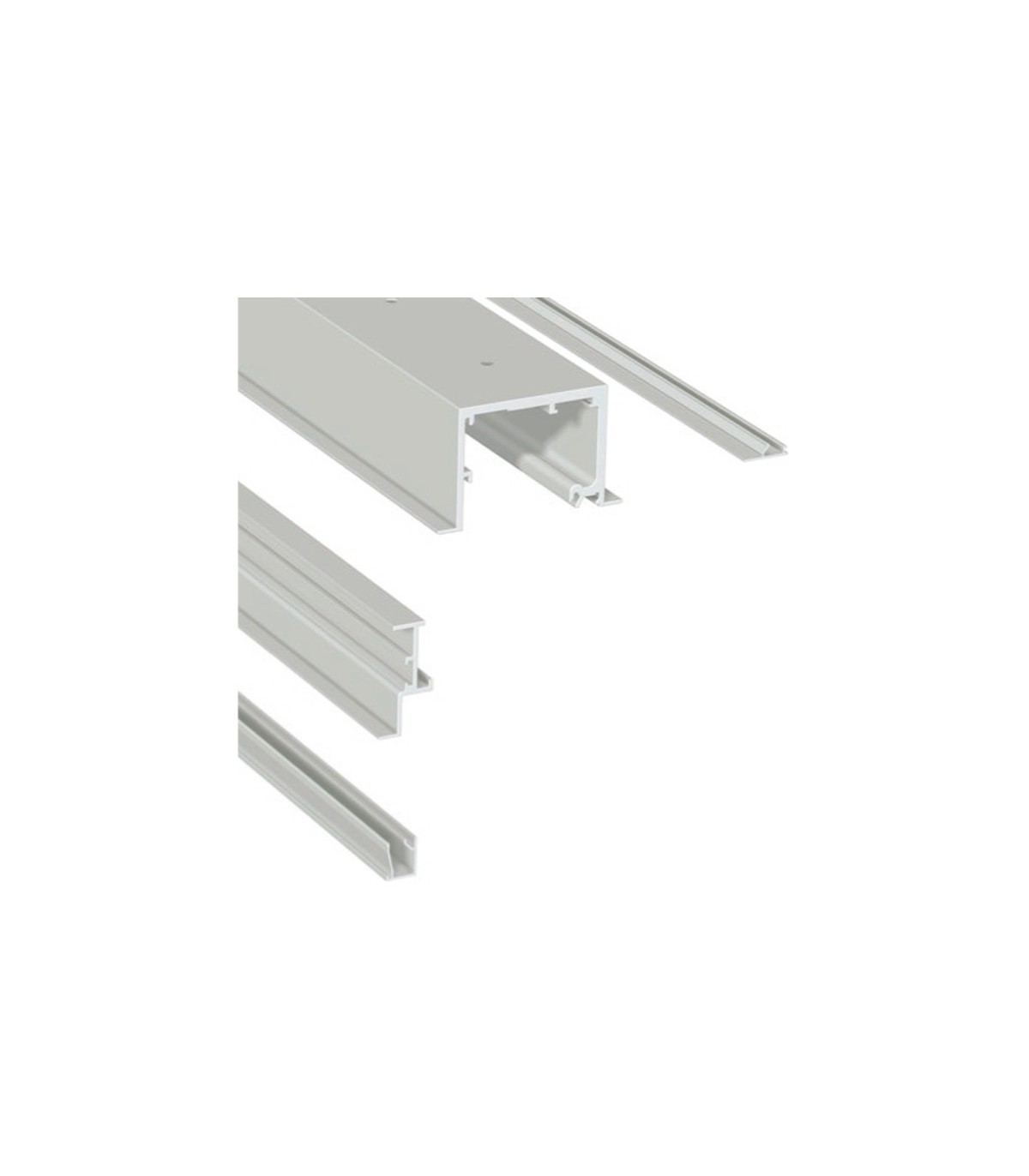 Conjunto perfil superior corredero falso techo con vidrio fijo. Aluminio anodizado.