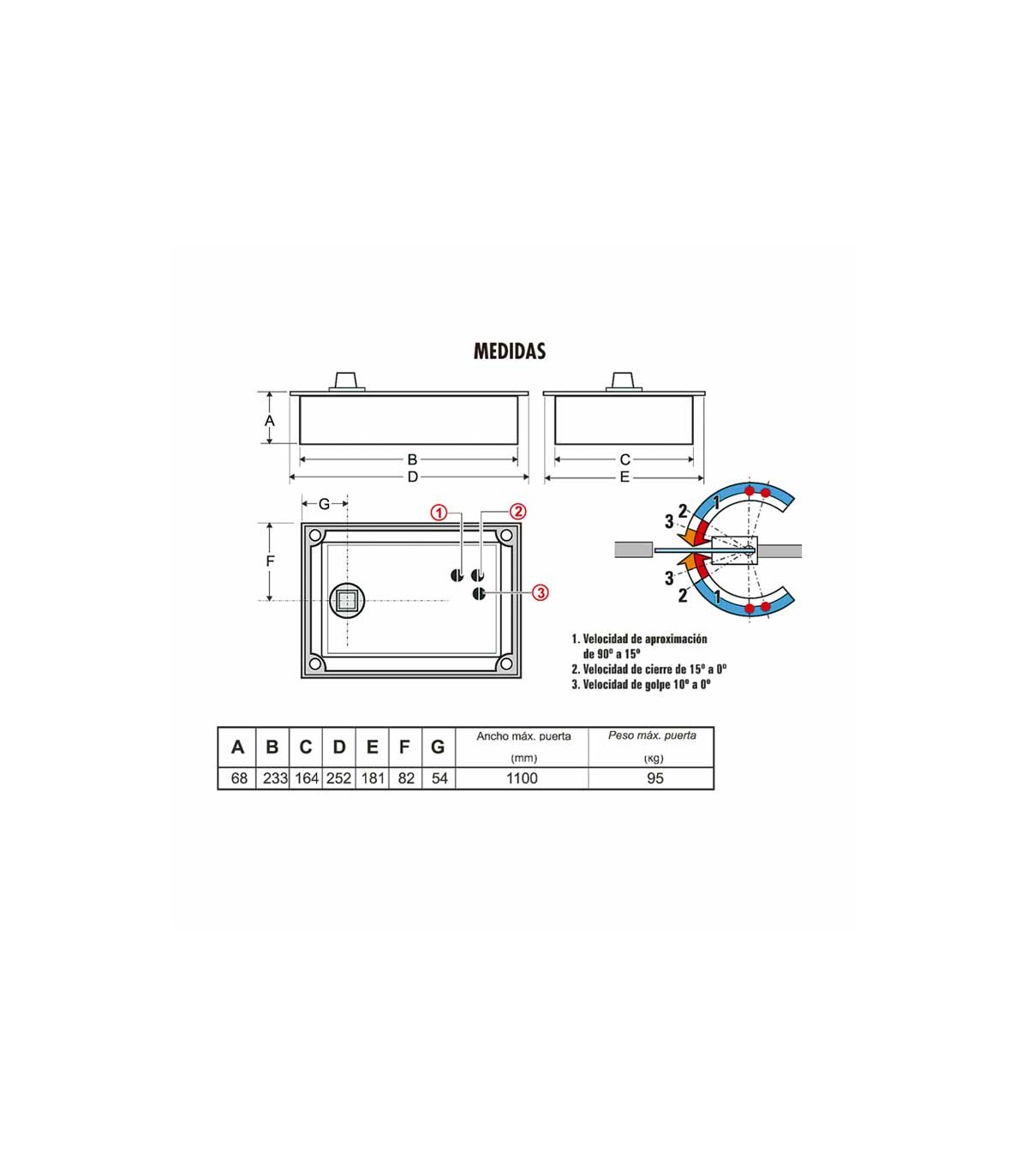 Fuerza 1: 95 a 100 cm - Alto 230 cm - Peso máx.: 80 kg
